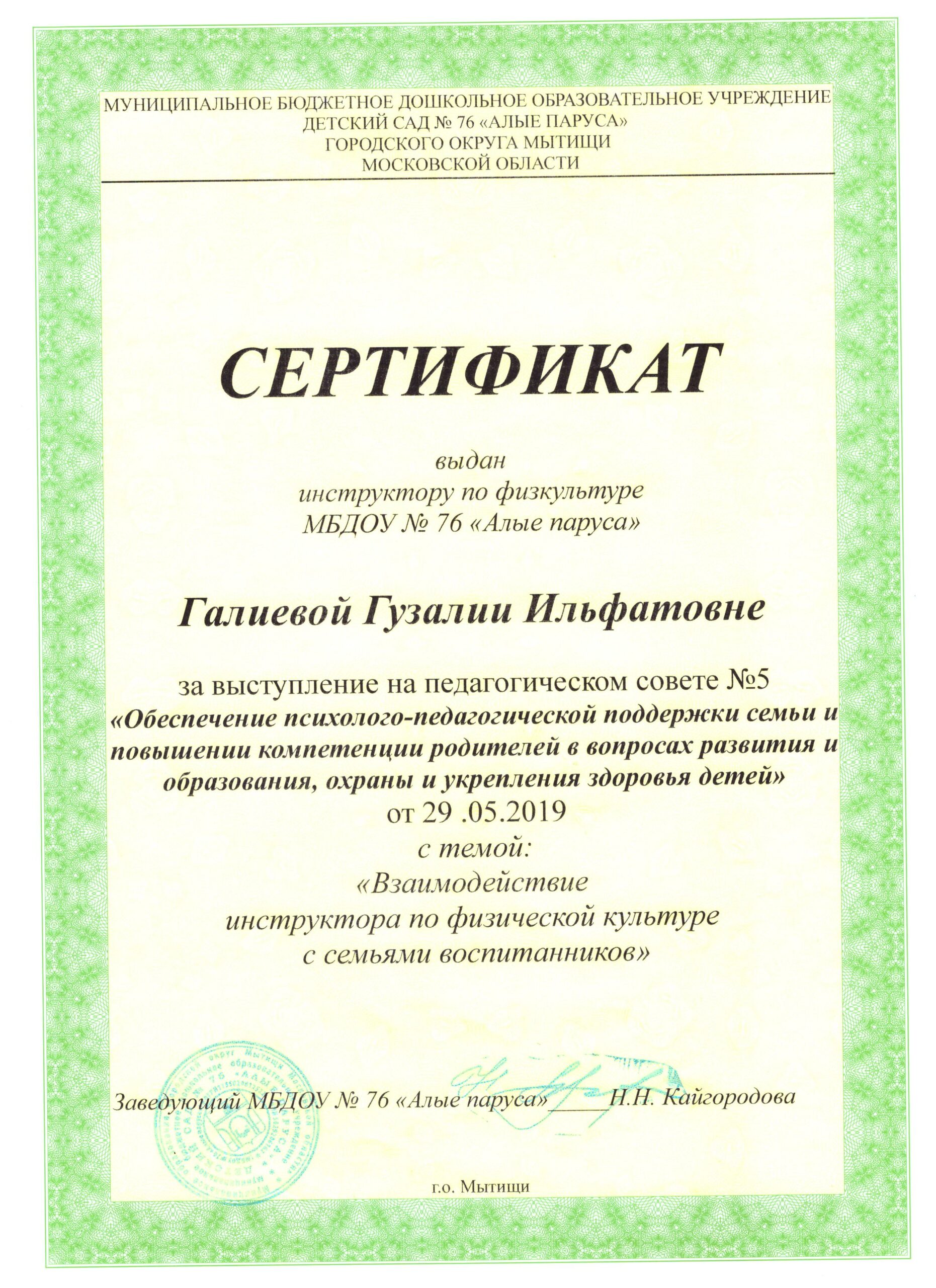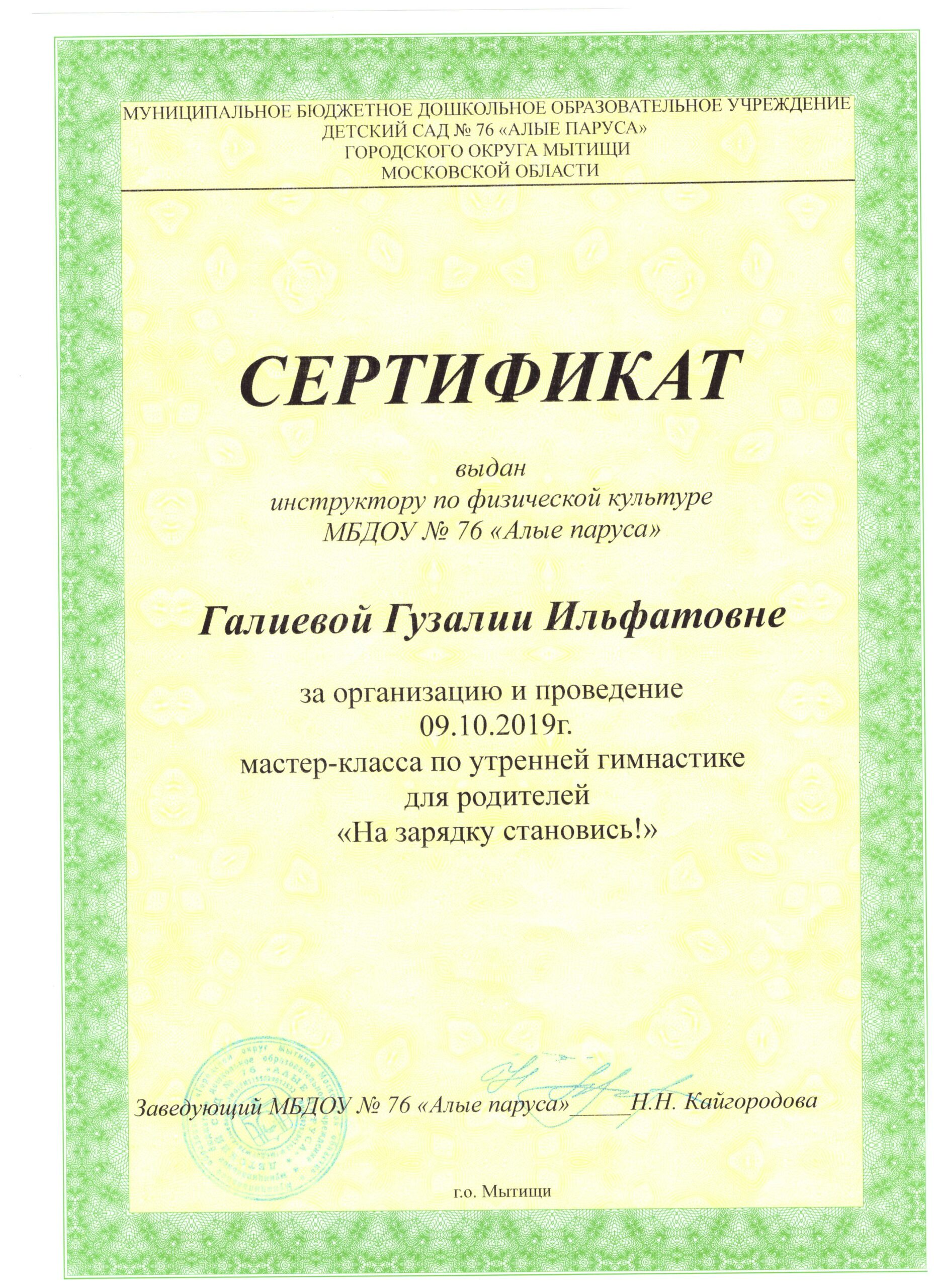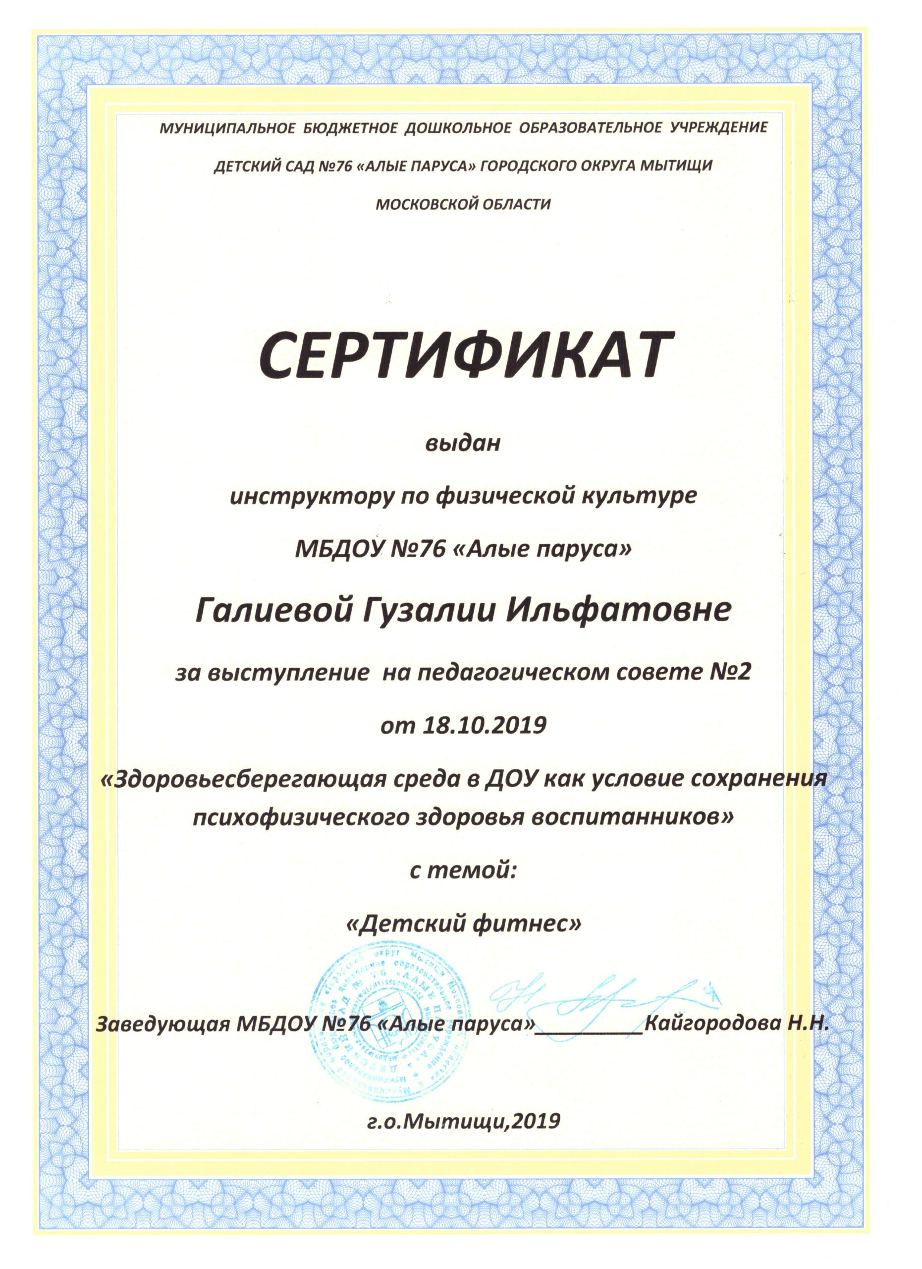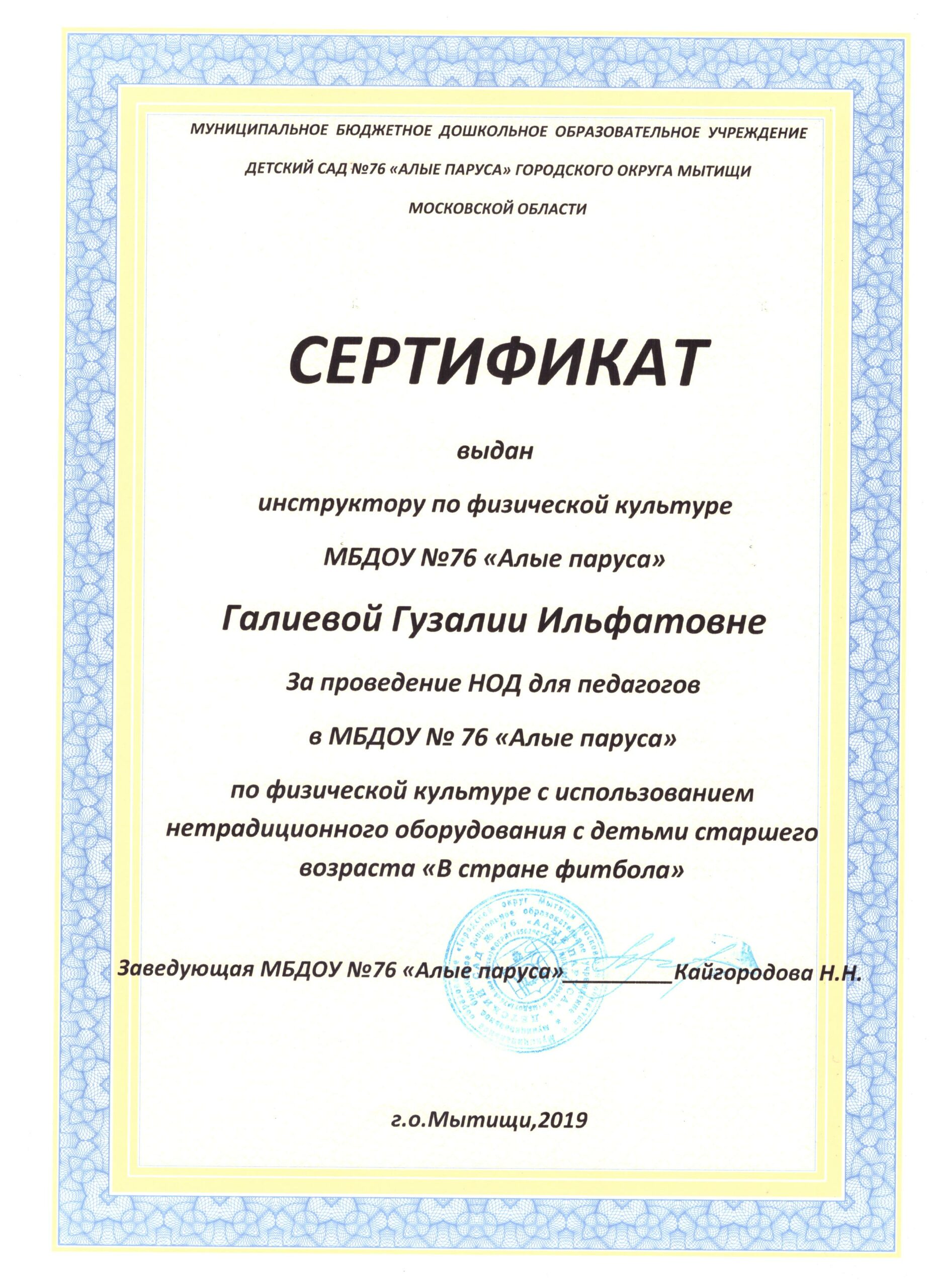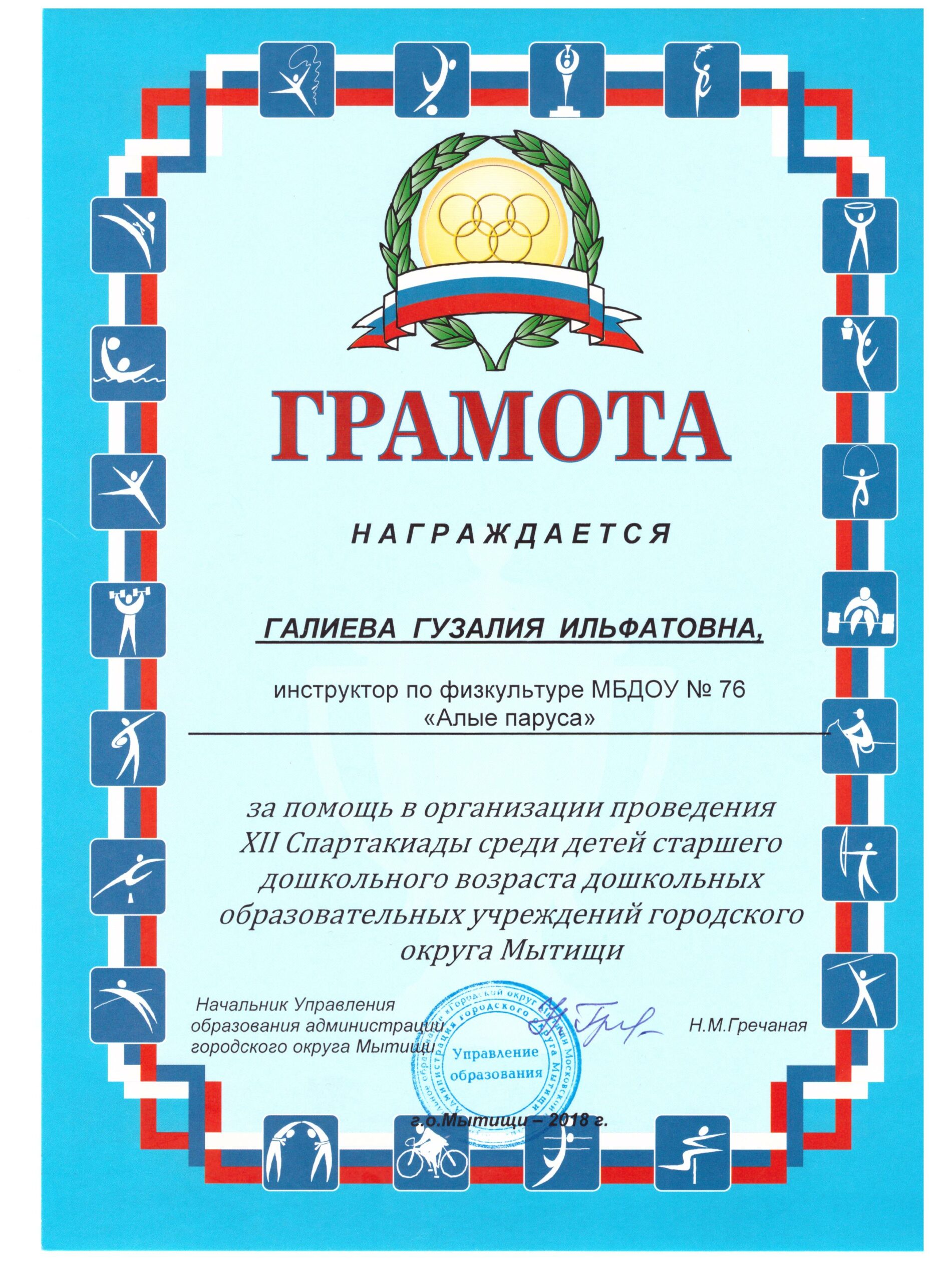 - 2007г. Татарский государственный гуманитарно — педагогический университет,квалификация «педагог по физической культуре» по специальности «Физическая культура»