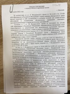 Предостережение о недопустимости нарушения обязательных требований от 29 ноября 2022г №ИВ-139-29031